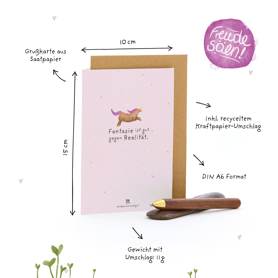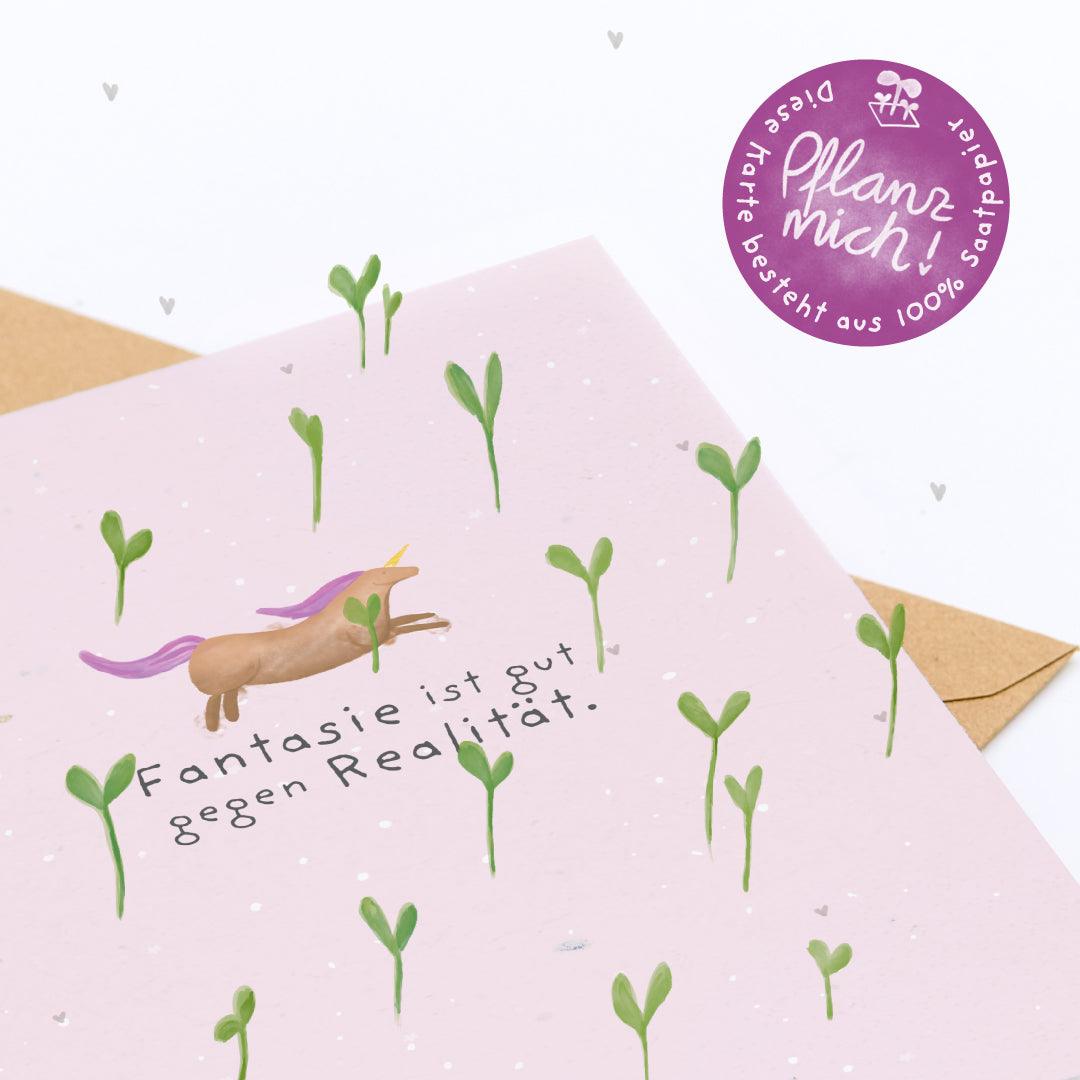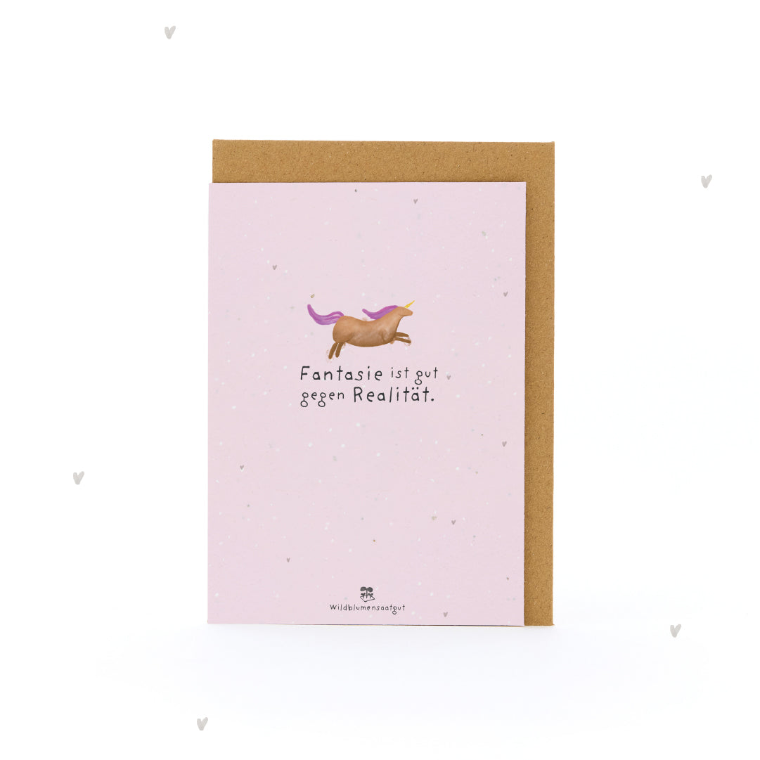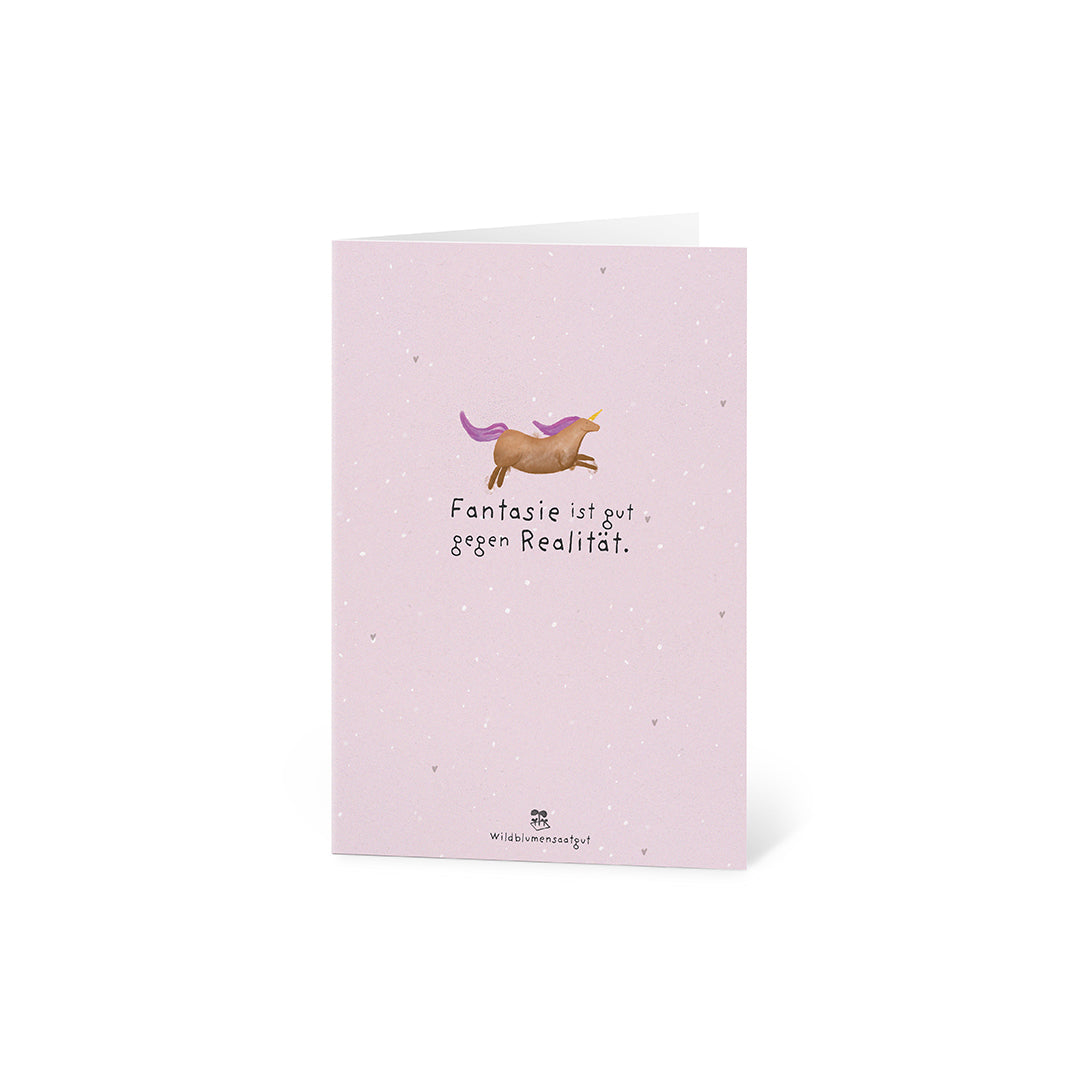 🦄 Fantasie ist gut gegen Realität: Diese Karte erinnert mit einem Augenzwinkern daran, dass Träume manchmal genau das sind, was wir brauchen. Sie schenkt ein bisschen Leichtigkeit, ein bisschen Farbe – und die Erlaubnis, einfach mal abzutauchen.