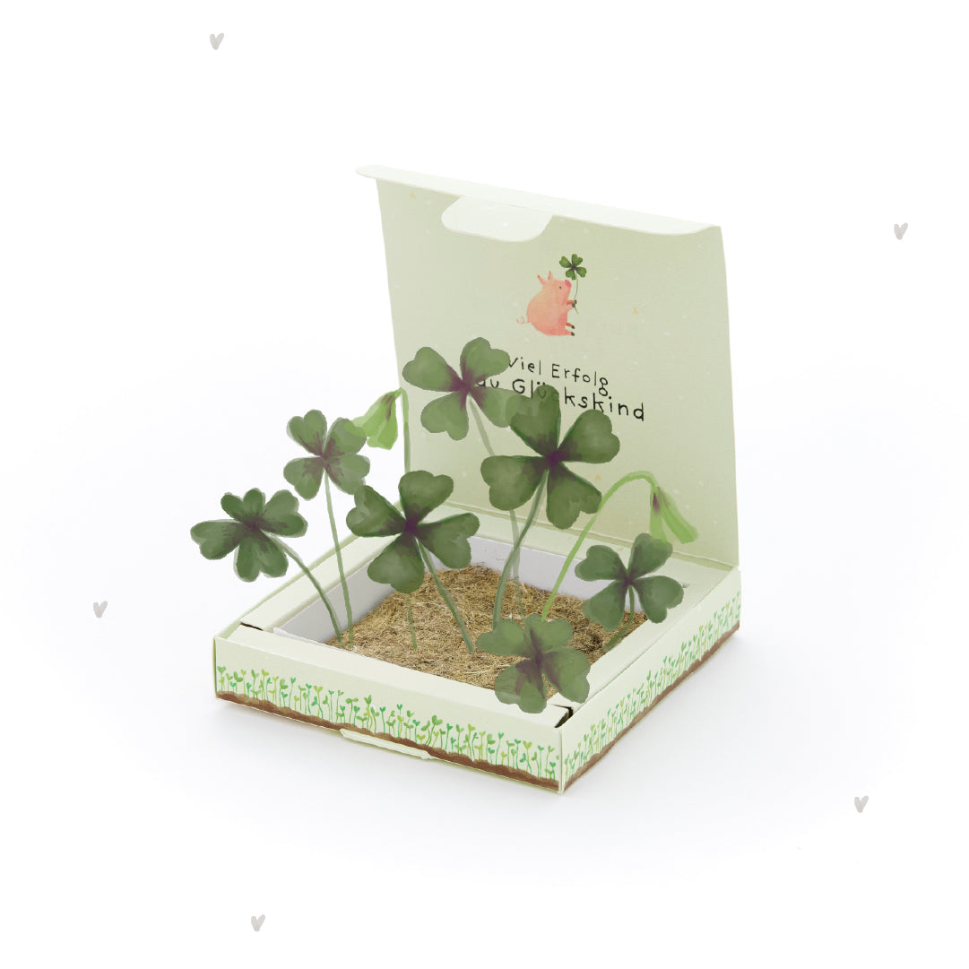 Ein Glückbringer, der Wurzeln schlägt: Ob zur Prüfung, zum Schulabschluss, Studienstart oder ersten Arbeitstag - dieses Set sagt auf besondere Weise "Alles Gute und viel Erfolg". Aus dem Saatgut wächst Glücksklee, und mit etwas Glück zeigt sich sogar ein vierblättriges Kleeblatt - das klassische Symbol für Glück, das bleibt.